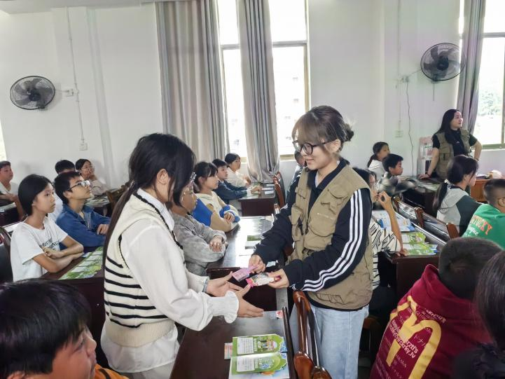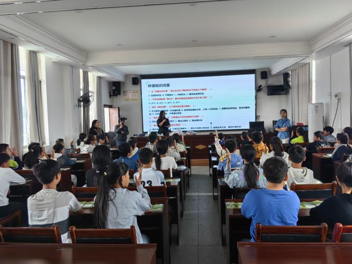宣讲结束后,紧张有趣的“环保普法知识竞赛”接棒登场。题目紧扣宣讲内容,涵盖环保法规、常识及小妙招,同学们凭借刚学到的知识积极作答,现场掌声与欢呼声不断。工作人员为获胜学生及表现突出者送上课本、笔、糖果等小礼品,以鼓励大家持续关注环保、学习环保法的热情。活动最后,工作人员向全体学生发放了环保普法宣传手册,主持人呼吁:“从今天起,把‘随手做环保’融入日常,用行动守护我们的家园!”