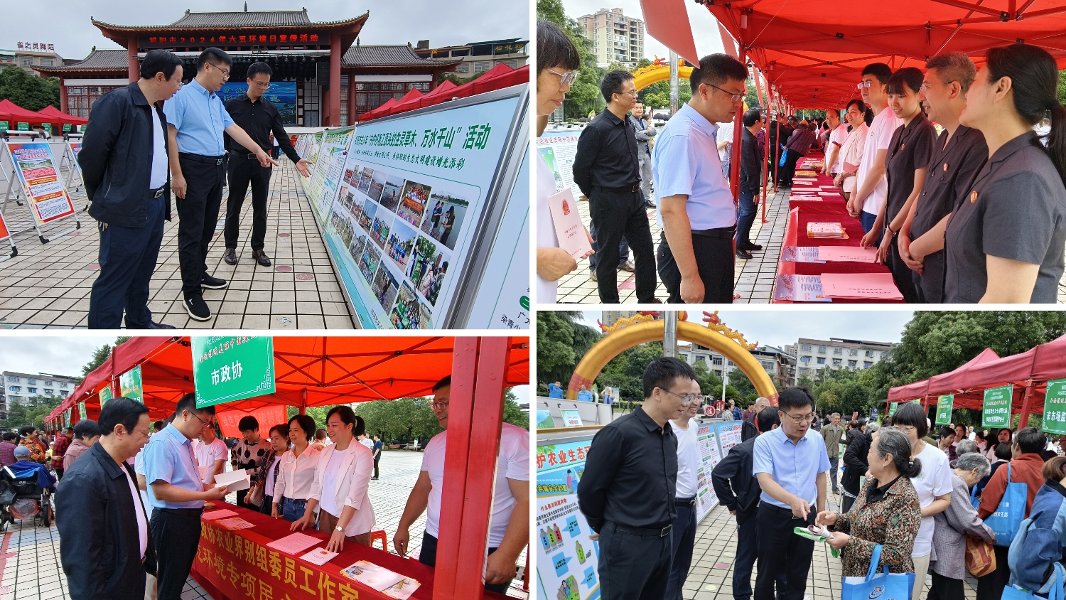 各镇(街道)及联系政协工作的专职副书记、政协专干和部分政协委员、市直机关、企业及商铺等,利用悬挂横幅、展出生态环保主题展板、发放宣传单、滚动播出生态环境宣传标语等方式开展集中宣传活动。