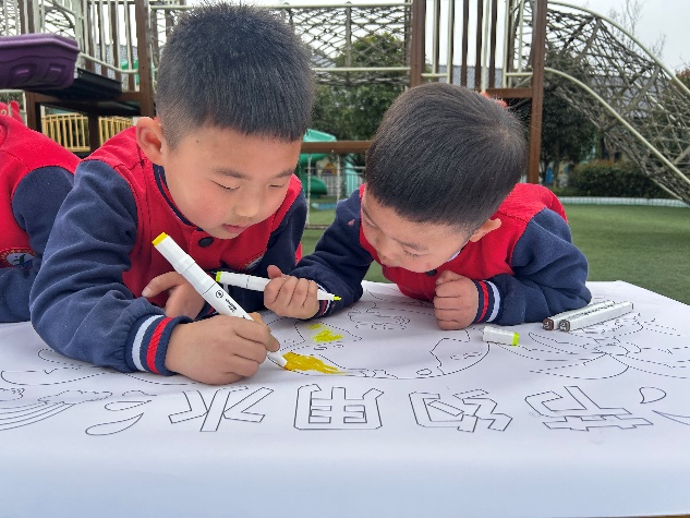 此外,各班级开展的以水为主题的绘画活动中,孩子们用五彩画笔描绘出心中对水的认知与热爱。