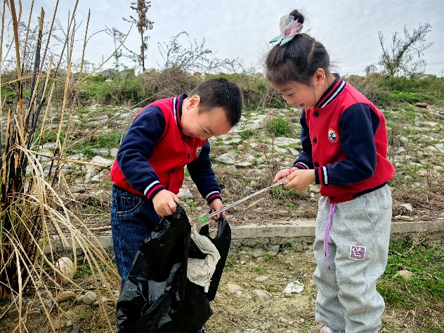 大班幼儿在绘画结束后,与大庸桥街道、立功桥社区以及当地的居民共同参与了捡垃圾活动,以实际行动践行环保理念。