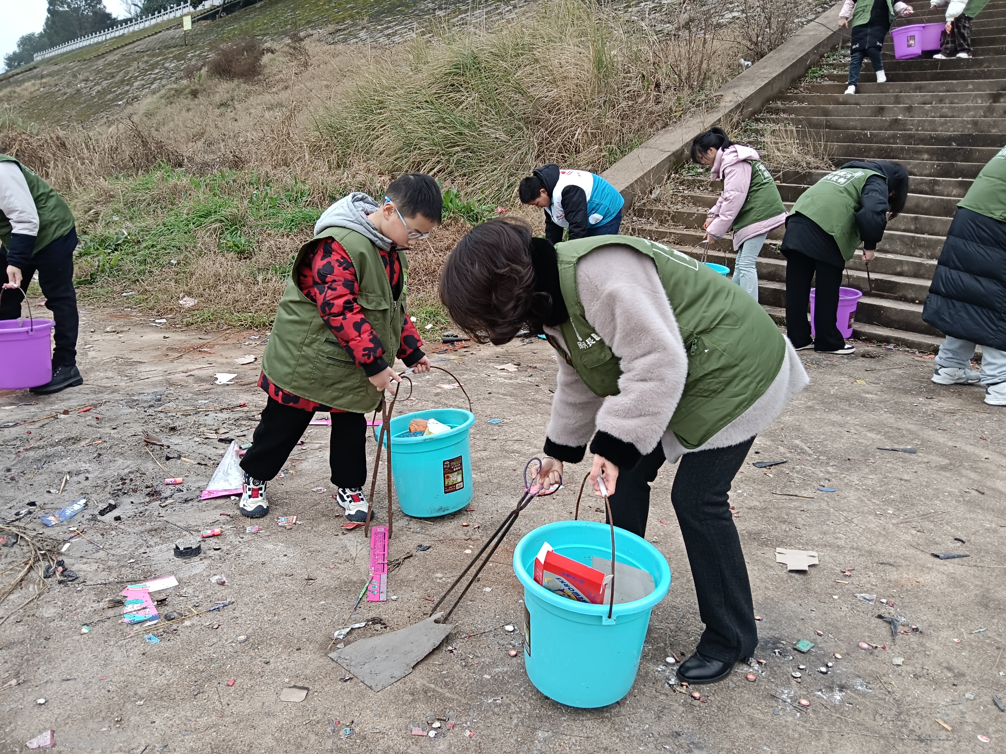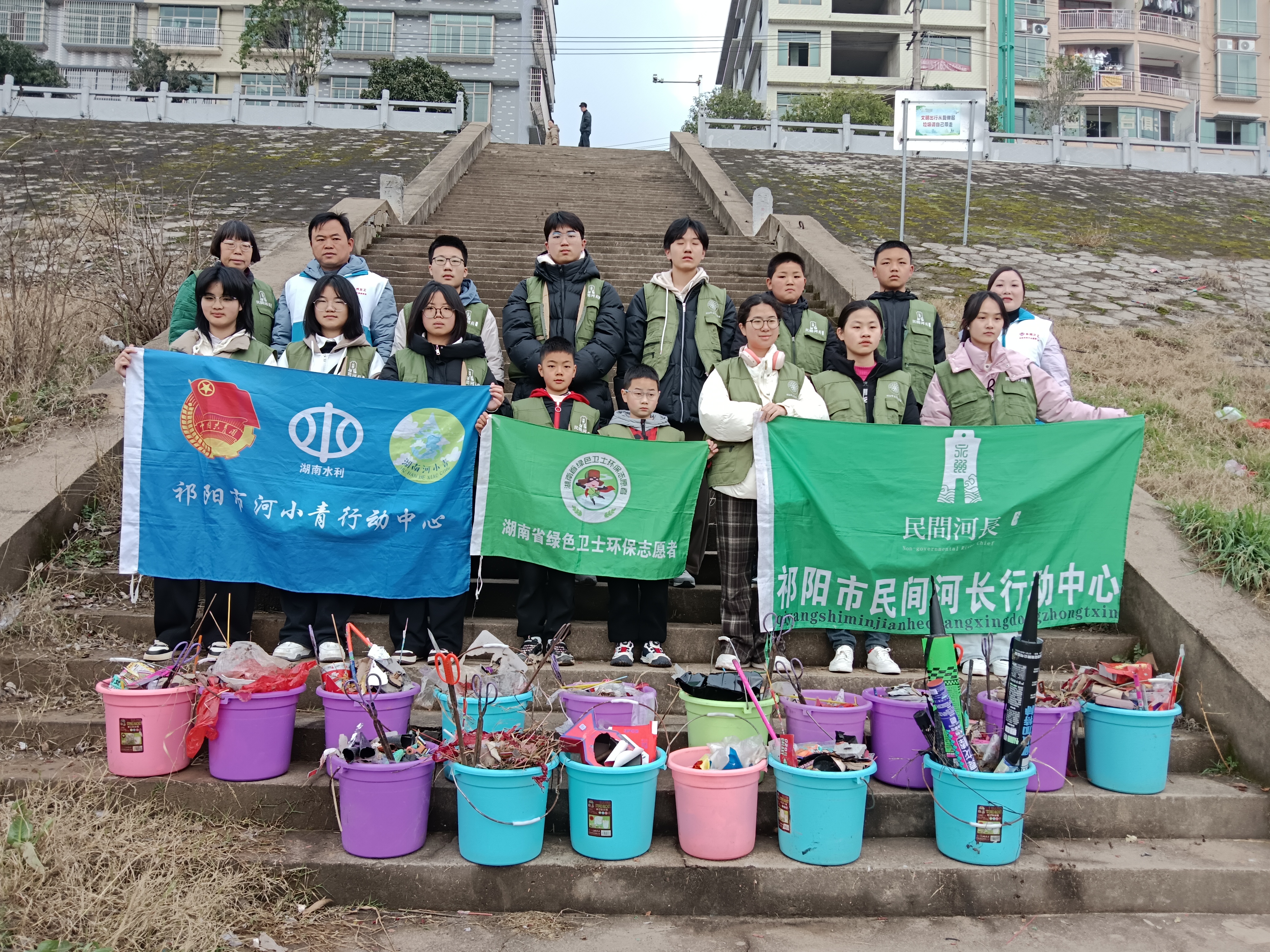 2月16日(新年正月初七),湖南省绿色卫士祁阳大队、永州祁阳市湘江流域志愿巡护中心、祁阳市民间河长行动中心、祁阳市河小青行动中心、大小牵小手组织志愿者在湘江祁阳沿江路段清理河岸烟花鞭炮屑,保护环境的同时,以实际行动呼吁公众改变陈旧理念。