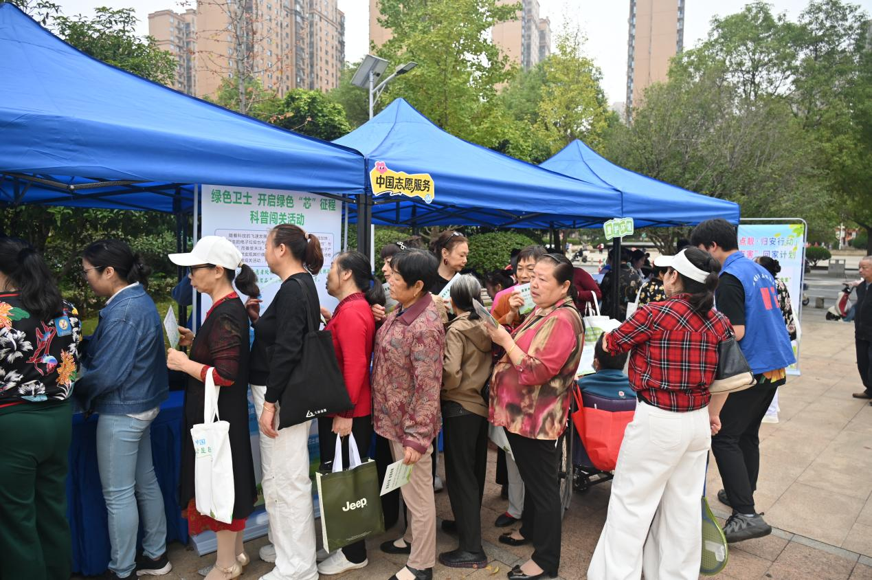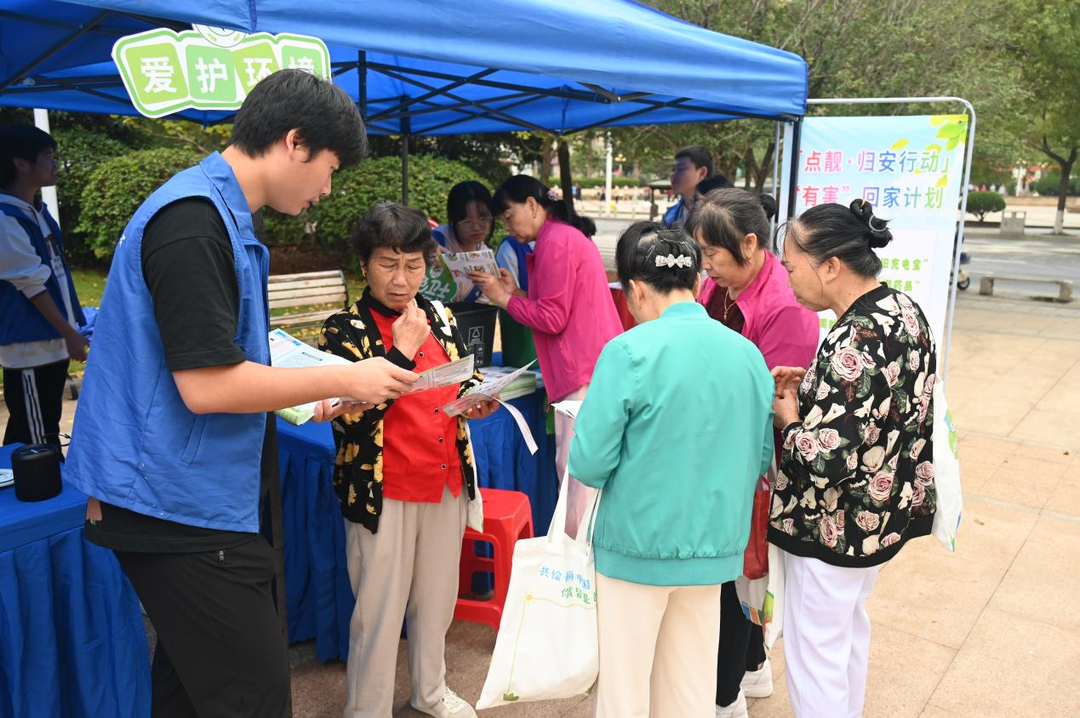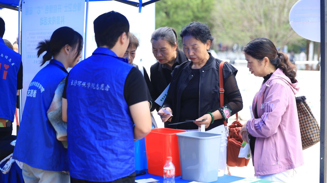 “筑绿·畅游乐园”闯关区,更将专业科普玩出趣味。四组关卡均融入环保专业特色:第一关“知识充电”,循环播放学校自制的电子废弃物科普视频,志愿者同步发放环保科普折页,并指导居民完成挑战答题;第二关“火眼金睛”,通过分类卡片投放游戏,检验居民课堂所学成果;第三关“创意工坊”,由志愿者指导居民将废旧材料变废为宝;第四关“使命召唤”,则引导居民分享环保感悟,让“美丽中国我是行动者”的理念落地生根。
