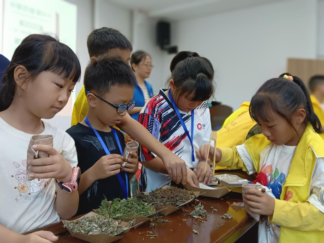 称药、研磨、装袋、封口……空气中弥漫着草本的清香,也充满了动手的乐趣。一枚小小的香囊,将传统中医药“治未病”的智慧和利用自然馈赠的绿色生活理念具象化,成为孩子们带回家中最特别的礼物。