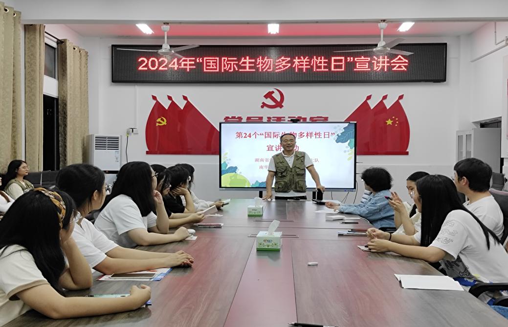 5月22日,省绿色卫士衡阳绿雁大队联合南华大学环保协会向自全校40多位环保爱好者举行了宣讲活动,简单介绍了“国际生物多样性日”的由来,以及《生物多样性公约》第十五次缔约方大会(COP15)、《生物多样性保护战略与行动计划(2023-2030年)》等主要内容。