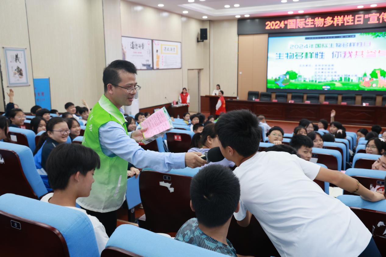 5月22日,湖南省绿色卫士冷水滩区大队、冷水滩区爱自然生态保护中心,联合举行生物多样性科普实践进永州市第二十中学活动。现场播放了生物多样性主题科普微视频、水资源保护PPT,通过摆放主题展板、发放宣传资料等形式,向学生普及保护生物多样性和保护水资源等相关知识。