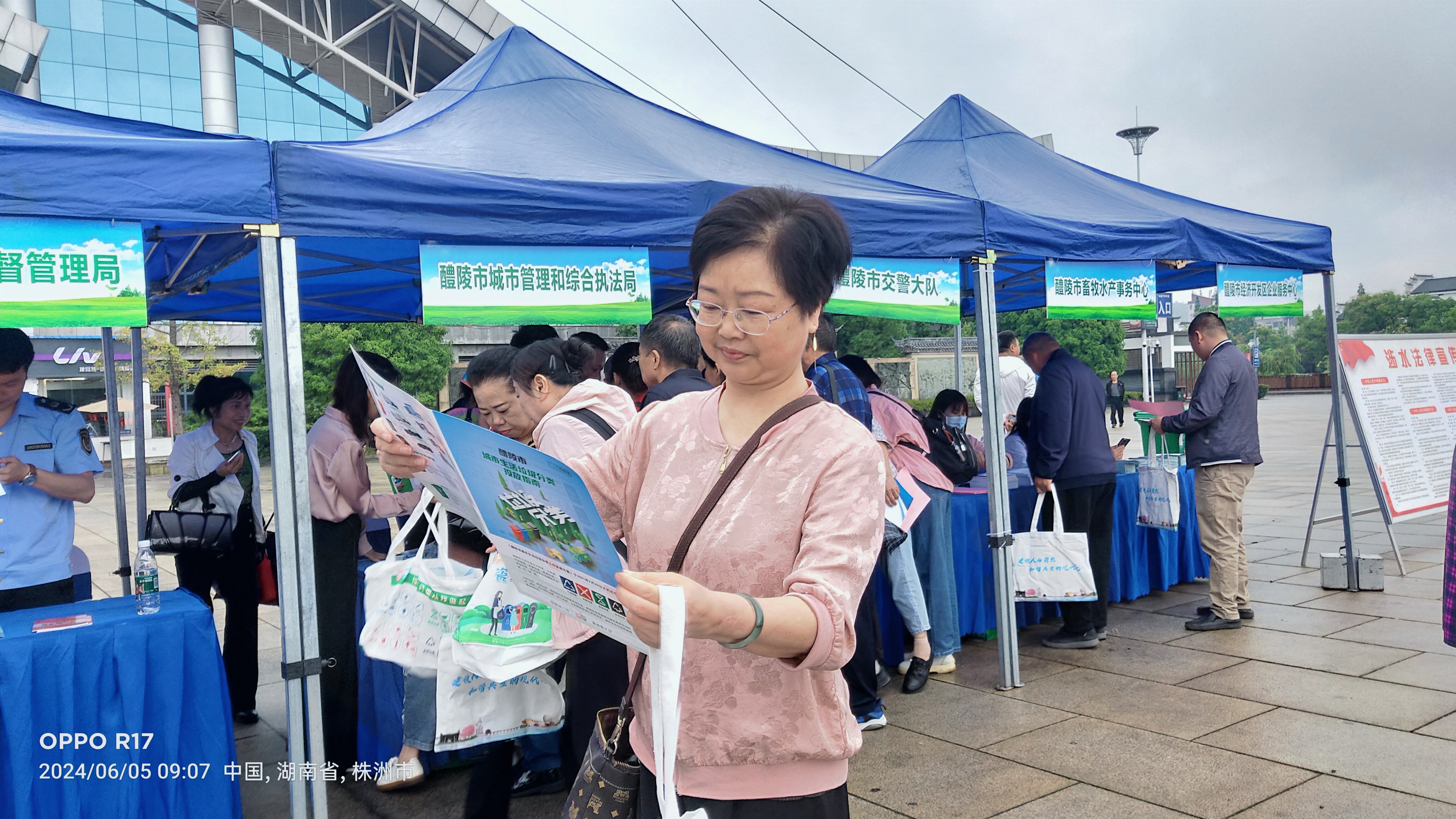 为引导公众树立和践行“绿水青山就是金山银山”的理念,配合全面推进美丽中国建设。6月5日,株洲市生态环境局醴陵分局携手省绿色卫士醴陵一队和醴陵市环境保护志愿者协会在渌江广场开展“六五”环境日宣传活动。
