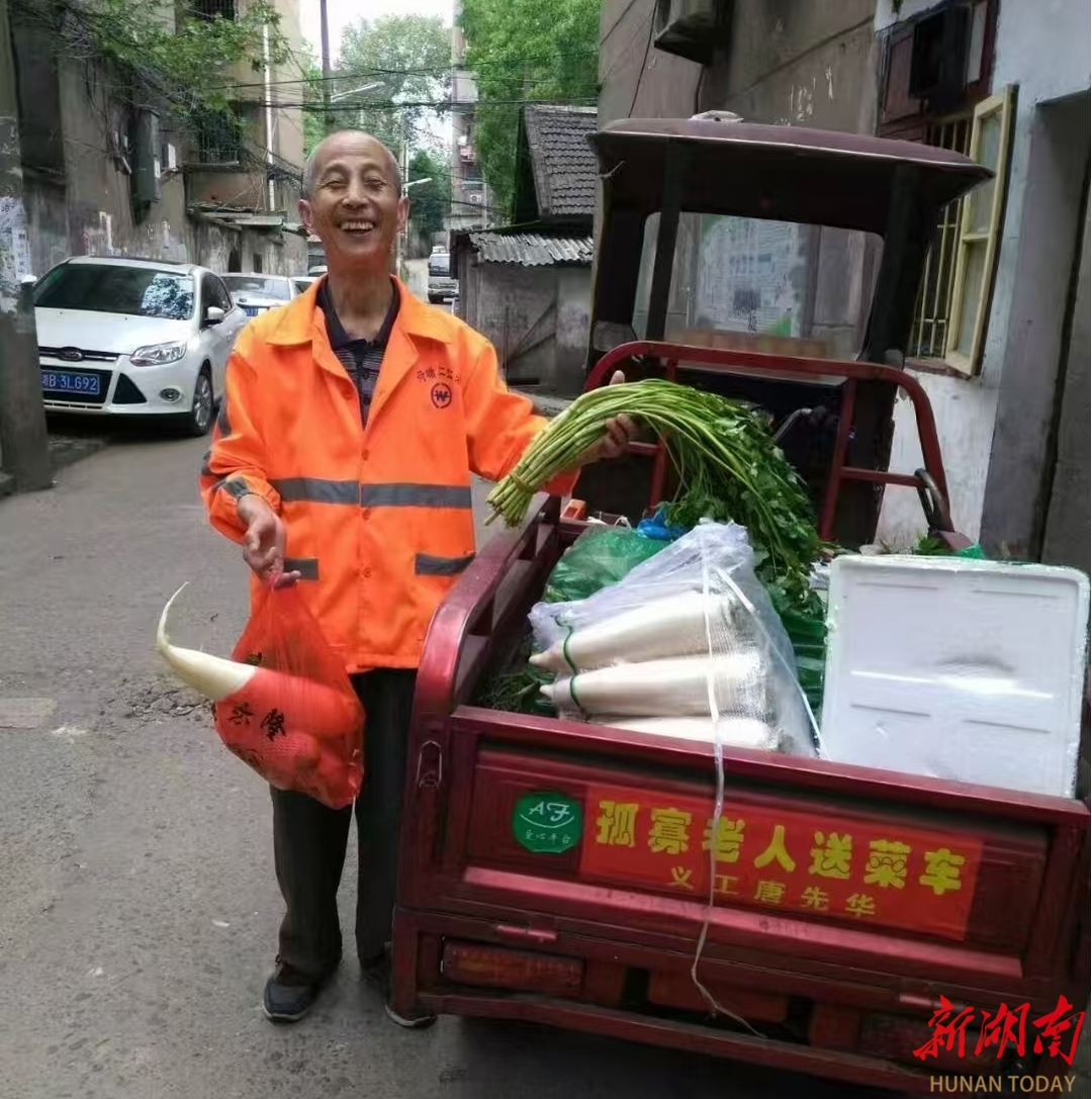 “孤寡老人送菜车”是义工唐先华长期坚守的志愿服务项目。他以一辆三轮车搭起爱的桥梁,风雨无阻为贫困孤寡老人们送去米、面、油等生活物资,让温暖在街巷间传递。