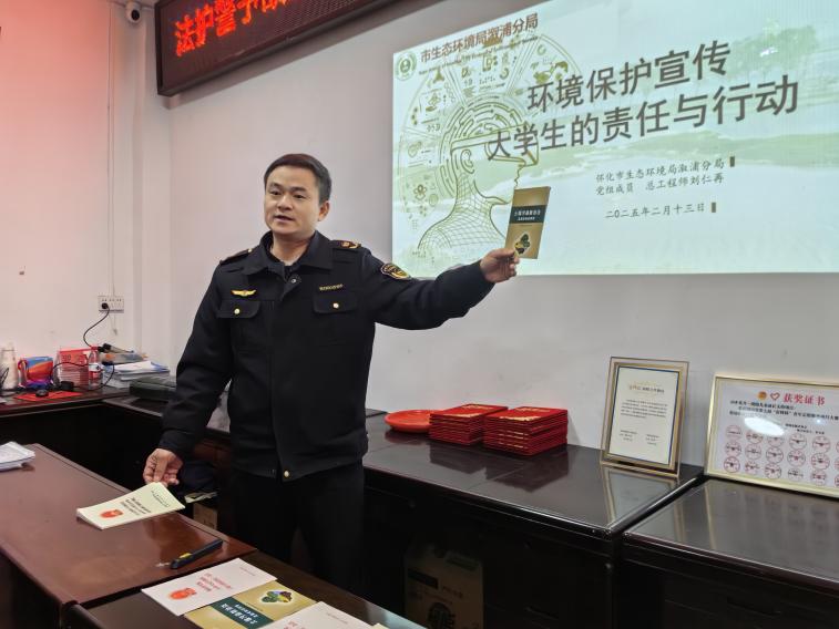 为提升新时代大学生在守护绿水青山的意识, 2 月 13 日,在具有深厚革命历史底蕴的溆浦县,怀化市生态环境局溆浦分局携手溆浦县省绿色卫士志愿服务队,面向寒假返乡的溆浦籍大学生,开展了一场以 “环境保护宣传:大学生的责任与行动” 为主题的生态环保知识宣讲活动。