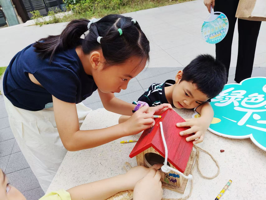 为了锻炼动手能力,社工们提前为青少年们准备了木质鸟屋、蜡笔等材料。在志愿者的指导下,青少年们开始对木质鸟房子进行装饰,将一个个原本朴素的木质鸟屋变成了色彩斑斓、充满童趣的“小鸟别墅”。