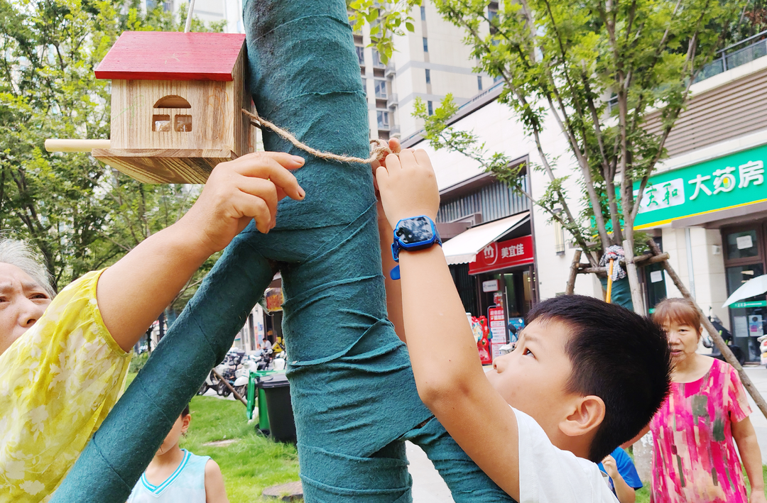“希望小鸟能快点搬进来住。”青少年们在志愿者的带领下将自己亲手装饰的鸟屋安装在小区的和社区公园的树上。活动现场,志愿者还带领社区青少年一起向过往居民和商户经营者发放了爱鸟护鸟宣传折页,普及鸟类保护知识,呼吁大家不伤害鸟类、不破坏鸟类栖息地,共同参与到爱鸟护鸟的行动中来。