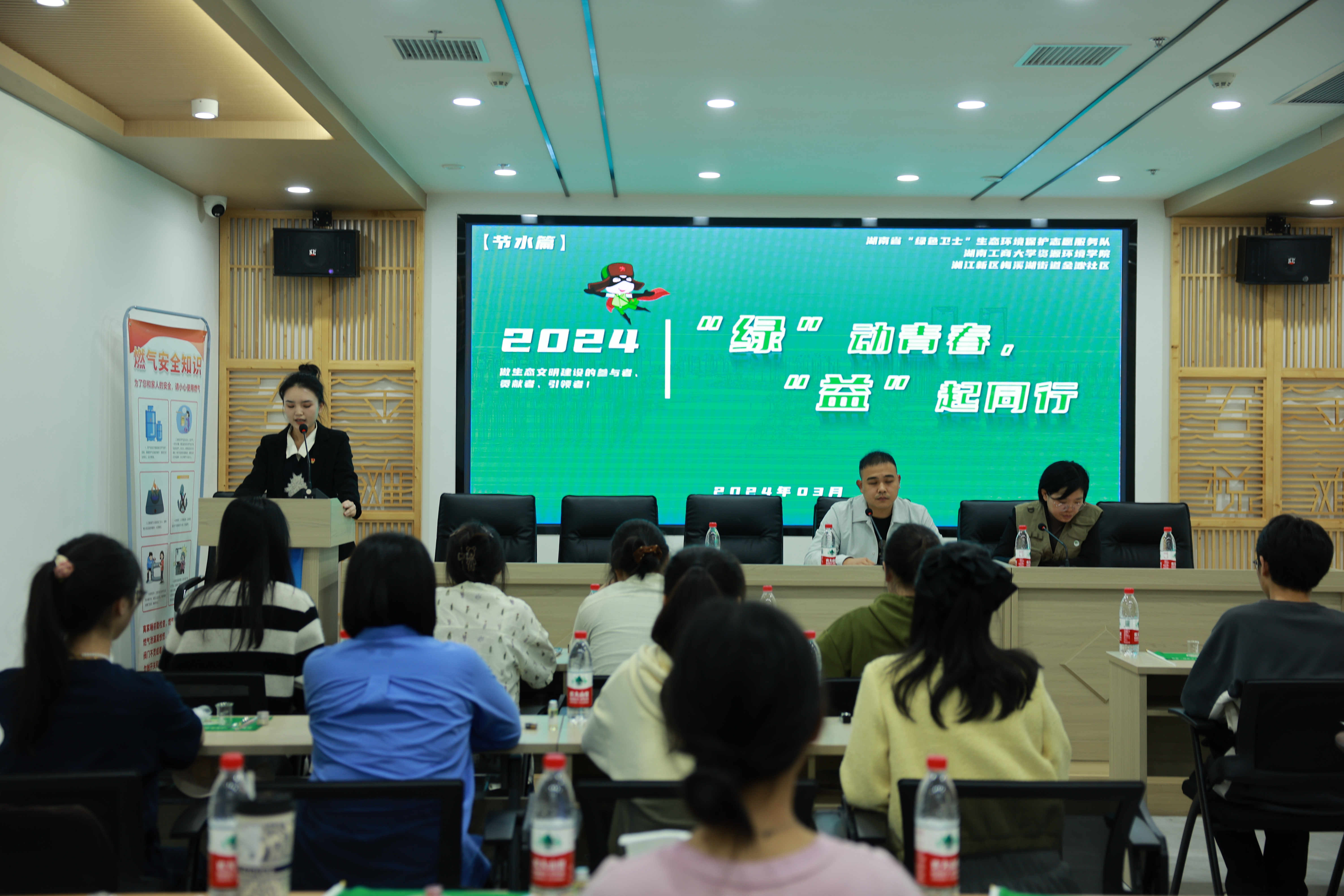 3月29日下午,湖南工商大学资源环境学院绿色卫士·智“探”先锋志愿服务队联合湖南省生态环境事务中心、湘江新区梅溪湖街道金滩社区40余名志愿者,在金滩社区会议室共同开展“绿”动青春,“益”起同行志愿服务项目启动仪式。
