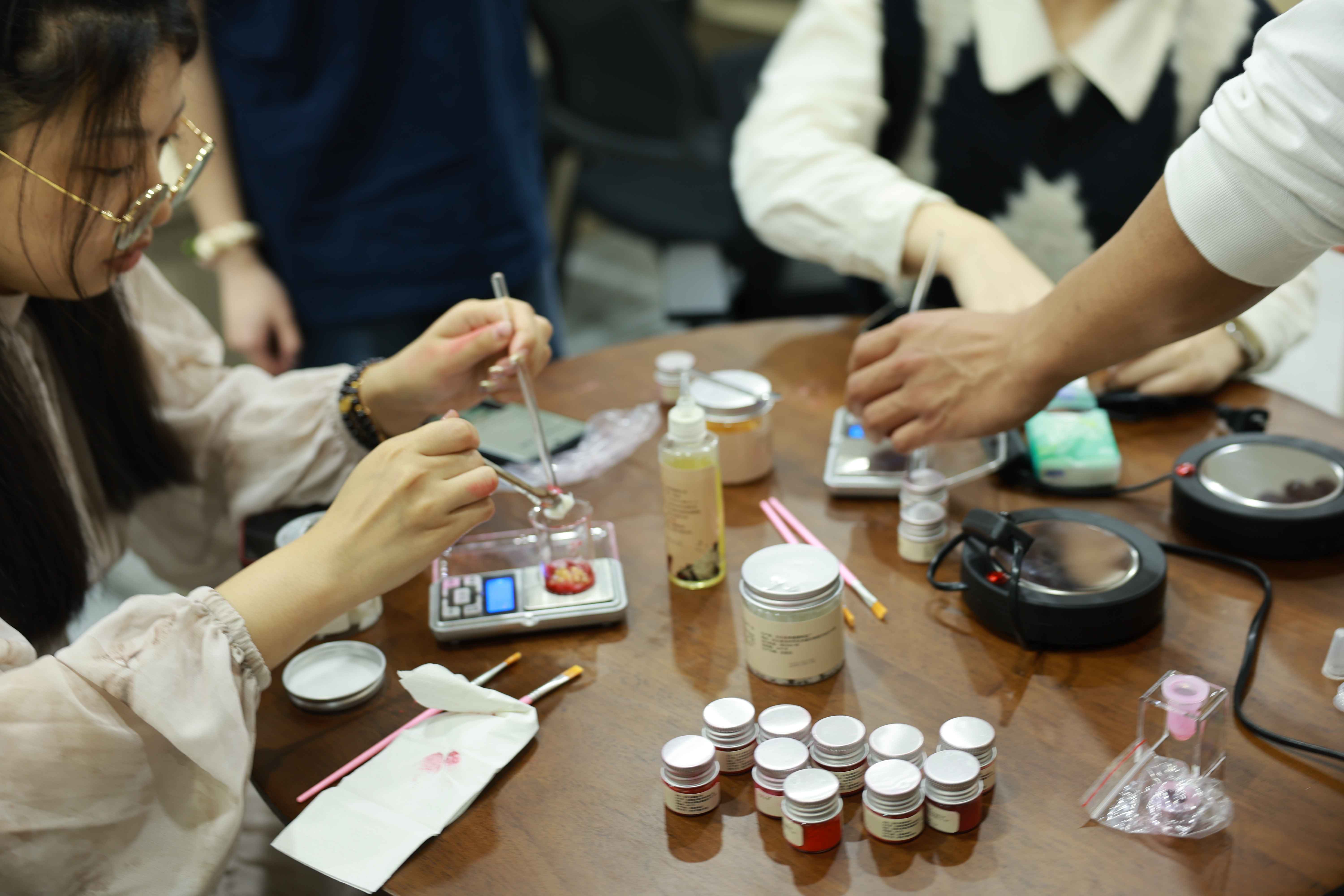 随后,在志愿服务队成员的带领下,志愿者们用“火龙果”经过倒模、凝固、脱模等一系列工序,制作了一只“绿色”口红。“自己做的口红没有科技与‘狠活’,用起来很安心。”参与活动的志愿者开心地说道。