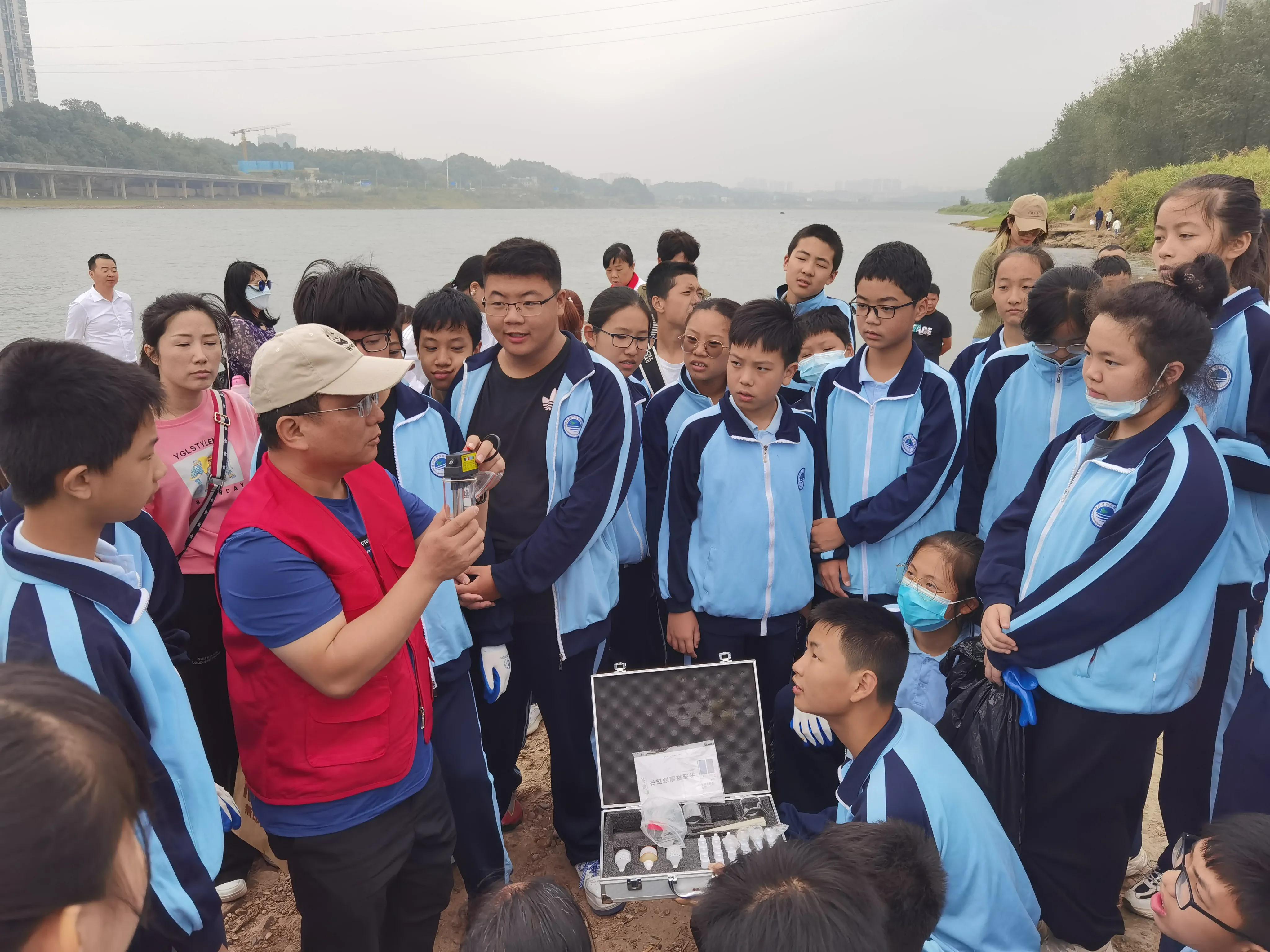 10月7日绿色卫士株洲大队联合株洲市生态环境局天元分局、天元区水利局、建宁中学于天元区钢琴广场沿江风光带开展“保护水生态、保护母亲河”主题宣传活动。这次活动是建宁中学2010班全体同学及家长利用国庆假期,在母亲河湘江边开展了一堂生动的环保校外小课堂。
