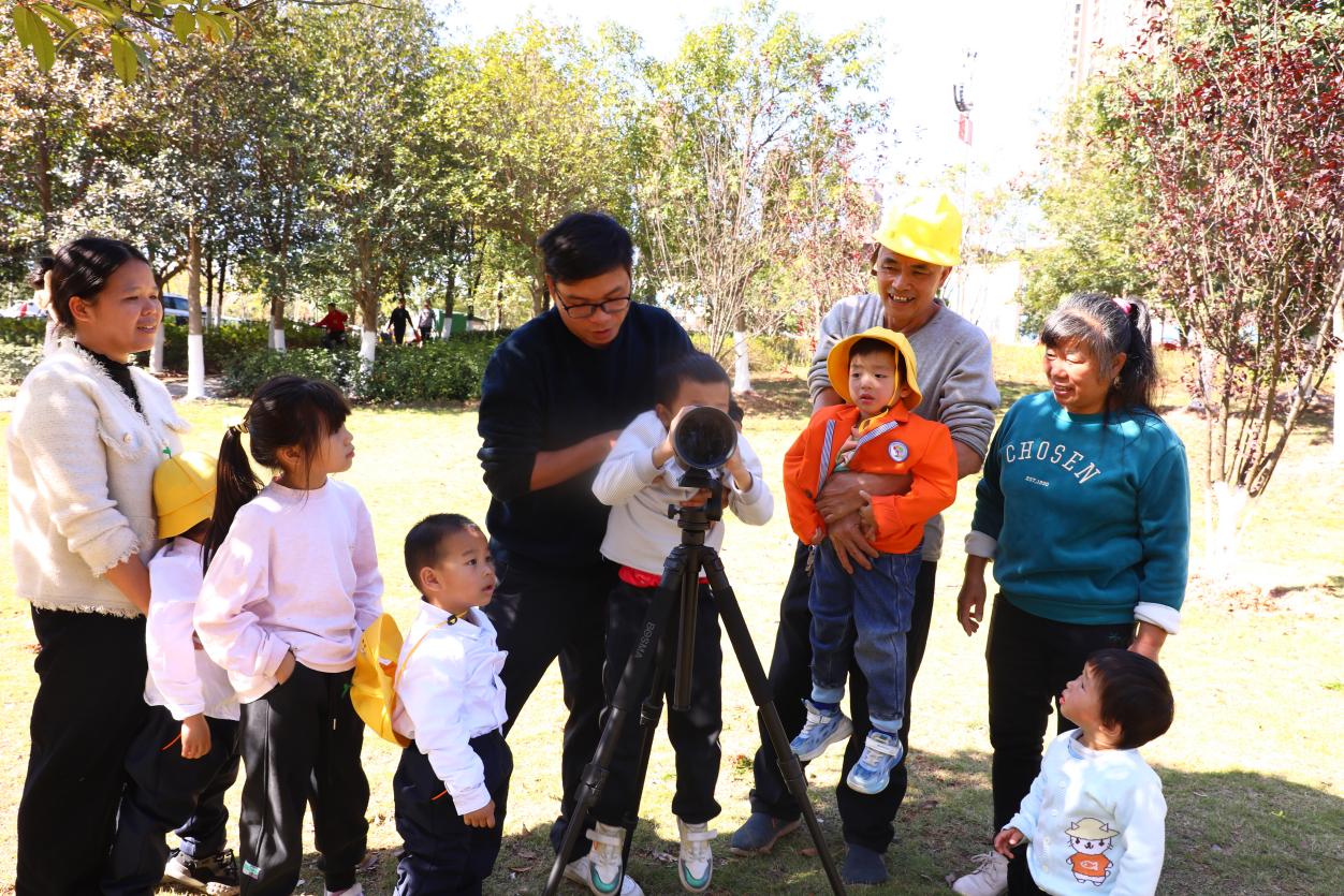 活动现场,讲解员向小朋友们科普了候鸟迁徙的因素,重点介绍了鸟中大熊猫——中国秋沙鸭,它是国家一级重点保护野生动物,是生态环境的“风向标”,倡议大家保护好我们的生态环境。并通过鸟类仿真模型的展示,让小朋友们近距离触摸、观察鸟类,且在实地搭建观鸟镜,让家长与孩子们共同寻找候鸟,小手牵大手共同科学爱鸟、共建生态家园。