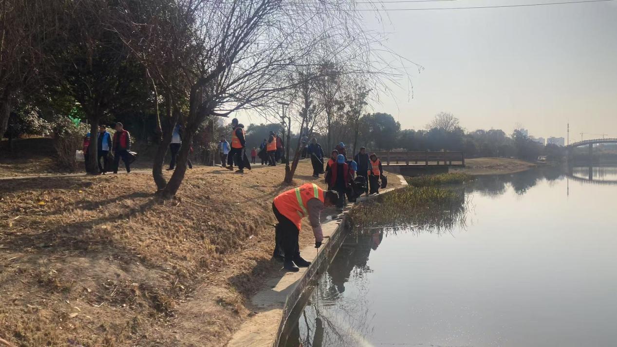 1月16日上午,在天元区马家河街道万丰湖,株洲市天元区水利局党支部、区河长办联合举办“党建引领,‘河我一起’共护万丰湖”主题宣传活动,来自湘潭生态环保协会、湘潭绿叶环保志愿者协会、湖南省绿色卫士株洲大队、河流守望者团队等生态环保志愿者参加。