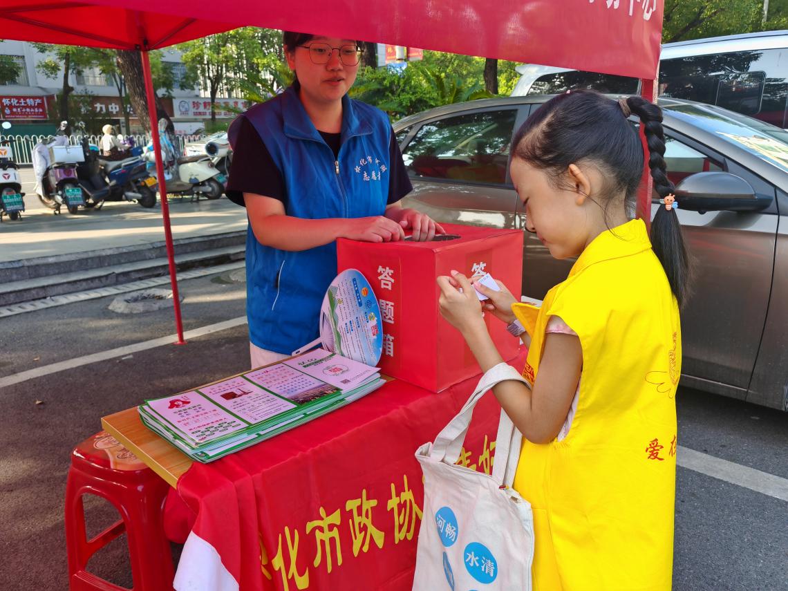 2024年8月15日是第二个全国生态日,为推进生态文明,宣传绿色发展,8月14日,怀化市委社会工作部、怀化市文明办、怀化市生态环境局、怀化市工青妇联合界别委员工作室、怀化市志愿者协会、怀化市同心公益服务中心、省绿色卫士怀化大队在市佳惠广场开展环保宣传活动。