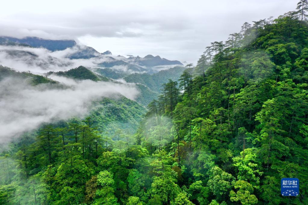 武夷山国家公园桐木村附近群山云雾缭绕(2021年5月18日摄,无人机照片)。新华社记者 姜克红 摄