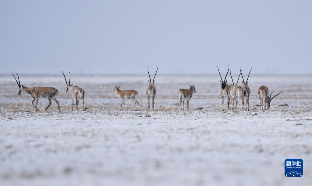 2021年4月20日,藏羚羊在三江源可可西里地区活动。新华社记者 吴刚 摄