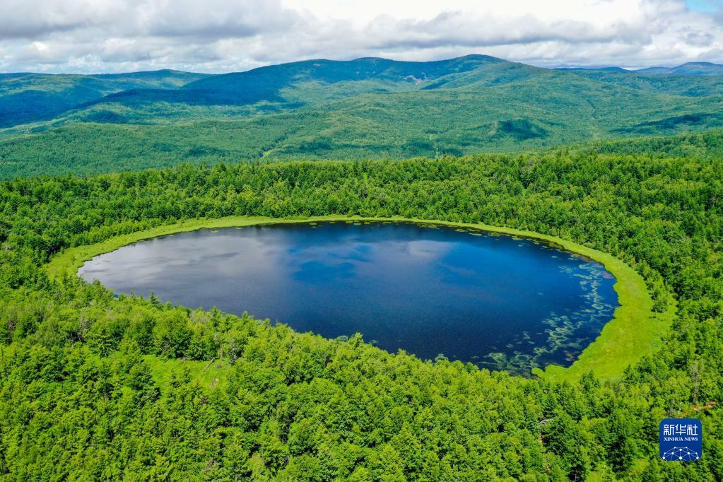 这是内蒙古阿尔山国家森林公园内的天池(2021年7月14日摄,无人机照片)。新华社记者 连振 摄