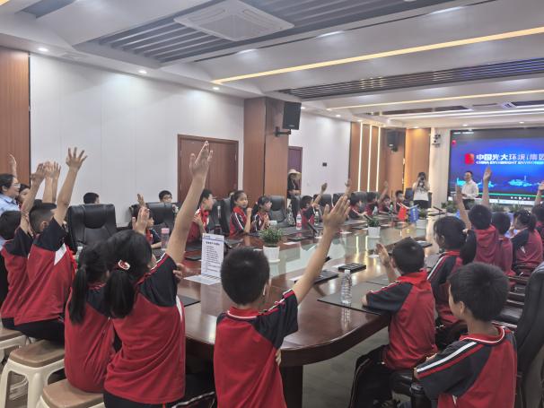 活动还设置了观看环保宣传片、有奖问答等互动环节。通过光大环境生活垃圾焚烧工艺流程动画短片,学生们了解了垃圾从源头分类到资源化利用的完整链条。在抢答环节,孩子们踊跃举手,分享学到的环保知识,现场气氛热烈。