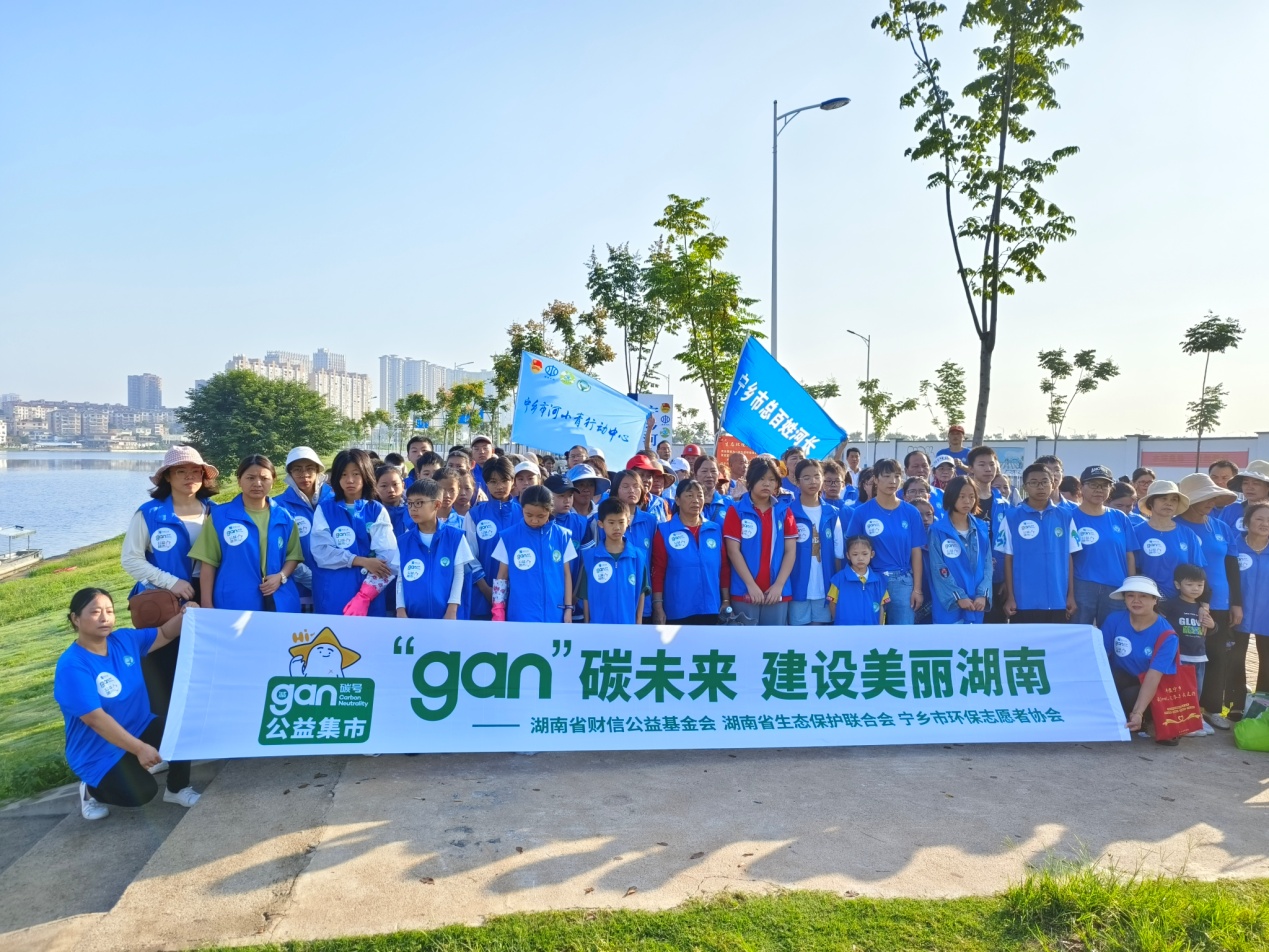 在湖南省财信公益基金会、湖南省生态保护联合会联合发起的“gan”碳号第三期公益伙伴计划项目支持下,9月17日,宁乡环保志愿者协会在宁乡河小青示范河湖开展“gan”碳号活动,清河净滩,保护母亲河,倡导绿色低碳生活。