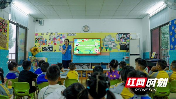 ▲中南林业科技大学志愿者在湖南新华集团印刷厂幼儿园开展科普活动。
