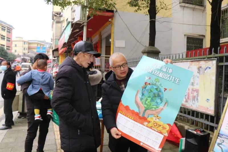 湿地生态环境关乎人类的未来,请大家共同携手,加强湿地保护,让天更蓝、水更清、地更绿、城更美……”1月25日,在桂阳县仁义镇的赶圩集市,省生态环境教育基地舂陵国家湿地公园管理处干部职工和志愿者们走上街头,向乡亲们宣传桂阳本地自然资源和生态环境保护知识,在热闹的赶圩日氛围中,为大家带来了一场丰富多彩的“世界湿地日”宣传活动。
