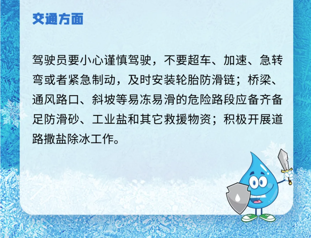 温馨提示:寒潮和低温雨雪冰冻期间,请广大群众高度重视心脑血管健康与传染病预防,严格落实各项防护措施,一旦出现不适及时就医。