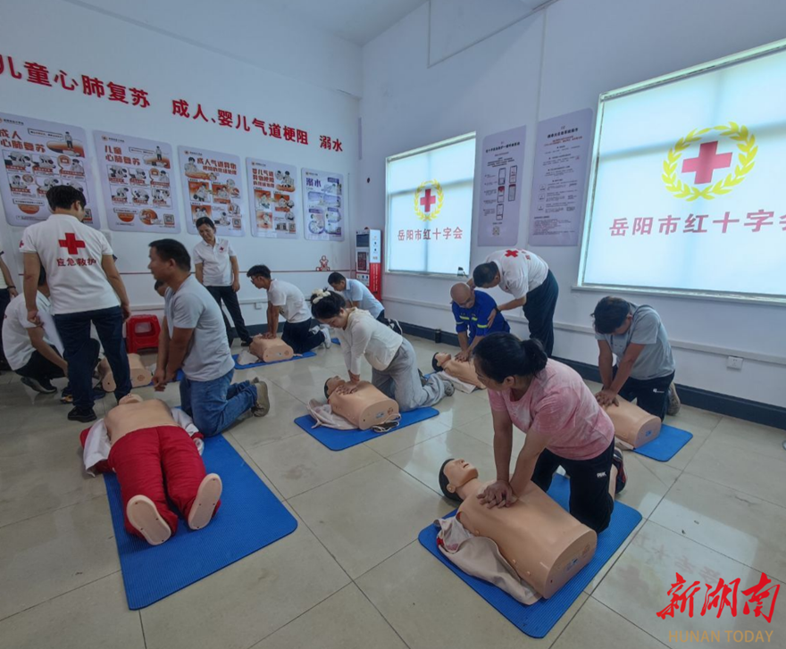 岳阳市红十字应急救护志愿者协会以“让每个家庭至少有一名成员掌握红十字应急救护技能;让每个灾害、事故现场都有红十字救护员挺身而出”为愿景,定期为社会各界人士开展应急救护知识宣讲和实操培训。