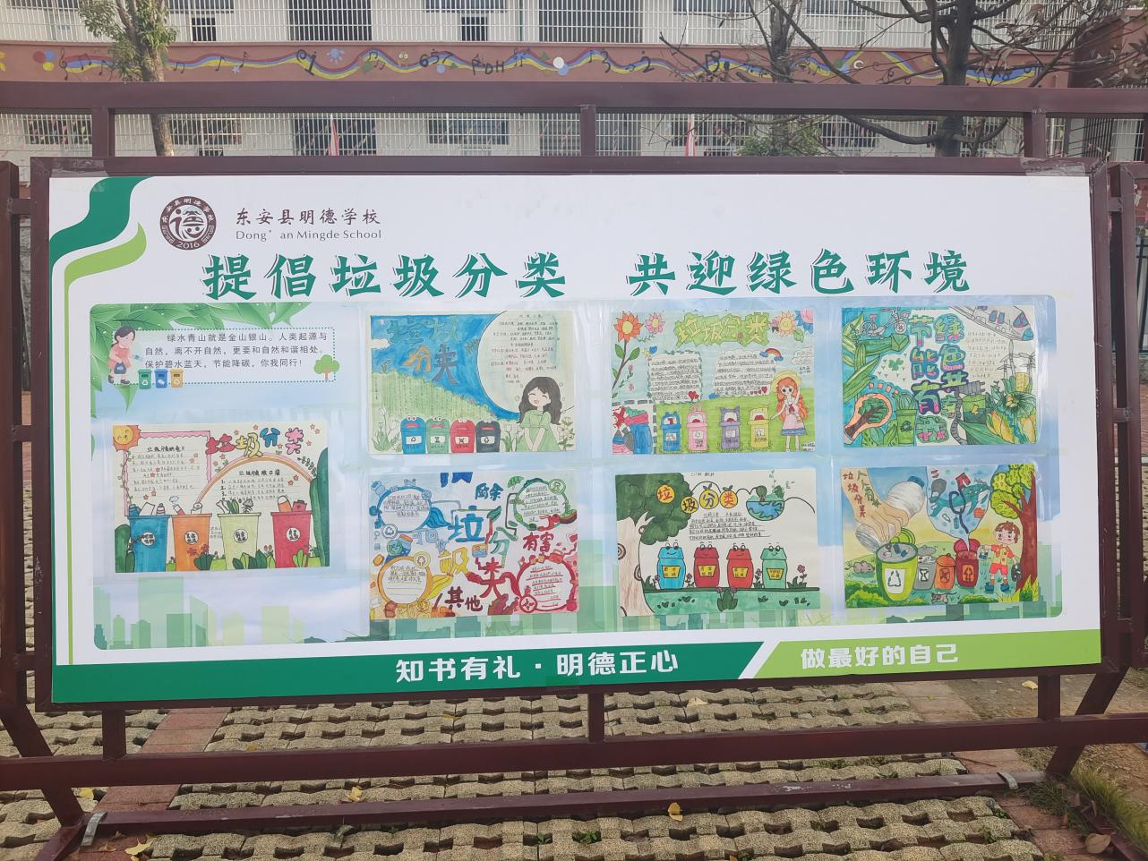 为提升学生德行修养,在广大学子内心播下低碳环保的种子,助力学生们在学习、生活中主动做环保宣传者和践行者,近期,永州市东安县明德学校专门开展了“垃圾分类人人做,做好分类为人人”主题活动。学校开展了“开学第一课”垃圾分类启动仪式、开班会、制作手抄报、剪纸等系列活动。活动中,学生们参与热忱很高,他们以图文并茂的手抄报形式积极助力垃圾分类,那些稚嫩的文字和精致的绘图,展现出了明德学子对共建绿色家园的渴望。