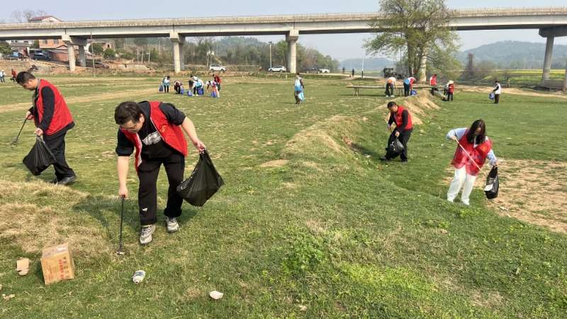 上午9时,志愿者们身穿红马甲,手持夹子、垃圾袋等工具,沿着河道附近展开地毯式清理。河岸边,干部职工带头弯腰捡拾塑料瓶、废弃包装袋等生活垃圾;浅水区,志愿者们涉水打捞漂浮物,连隐藏在草丛中的烟头、纸屑也不放过。大家分工协作,干劲十足,忙碌的身影成为春日里一道亮丽的风景线。经过一上午的努力,共清理垃圾3车,河道面貌焕然一新。