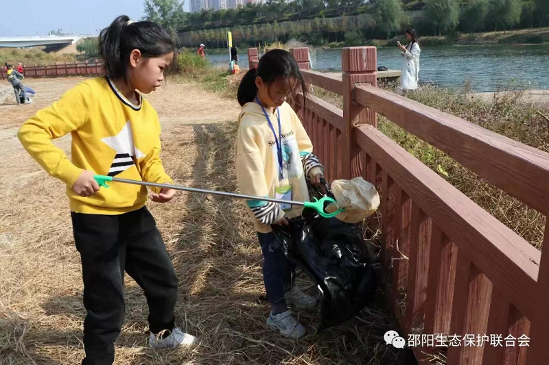 在志愿者和家长们的带领指导下,小记者们手拿长柄垃圾夹和垃圾袋,来到邵水河西岸桃花桥上游捡拾白色垃圾。小记者可兴奋了,绿化带里,河堤上,草丛中,不放过任何一丁点白色垃圾。临河岸滩,小记者发现不少钓鱼人留下的饵料袋、一次性饭盒、塑料袋等白色垃圾,都表示要坚决抵制这种不文明垂钓行为。