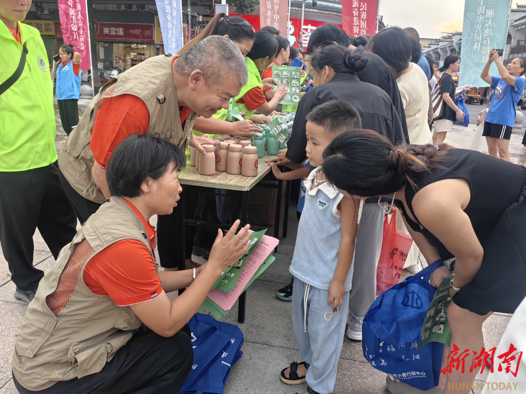 全国民族民间龙舟公开赛湖南麻阳站的比赛现场,溆浦绿色卫士志愿者在人流密集区域设宣传点,向观众、参赛选手及工作人员宣传《水污染防治法》《公民十条》等知识。