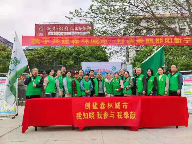 秀美崀山竞添绿,新宁人民共创森;保护生态,爱绿护绿。3月27日,风和日丽,湖南省新宁县在老广场开展“创建森林城市,我知晓、我参与、我奉献”主题宣传活动。