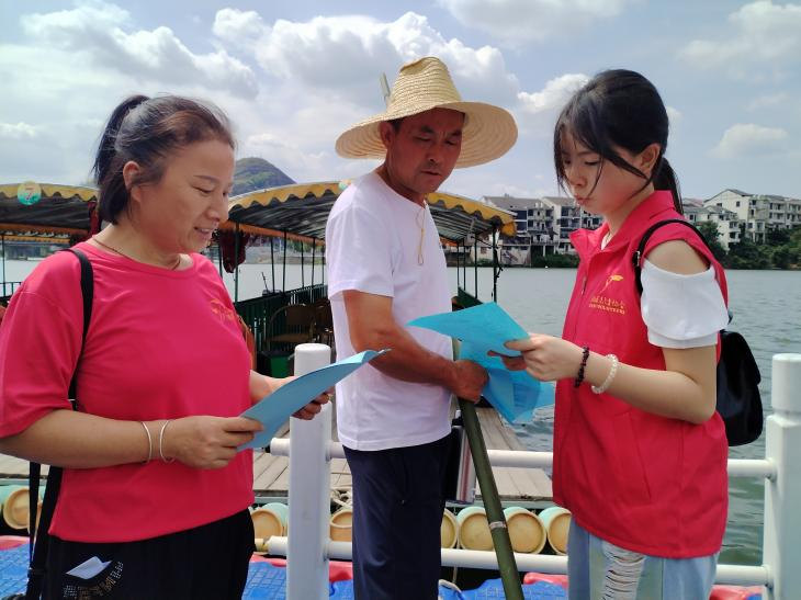 随后,志愿者进行分组,向游客中心工作人员及游客宣传绿色理念,普及垃圾分类、节能减排等环保知识。以全民参与生态环境建设为目标导向,将生态环保意识深植于每个人心中。