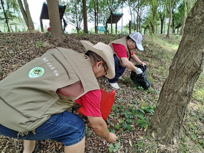 紧接着,志愿者队伍前往思蒙湿地公园开展净滩行动。烈日下,大家手持夹钳、垃圾袋,沿河岸仔细清理芦苇丛中隐藏的塑料瓶、烟头及废弃塑料袋等垃圾,让湿地环境焕然一新。