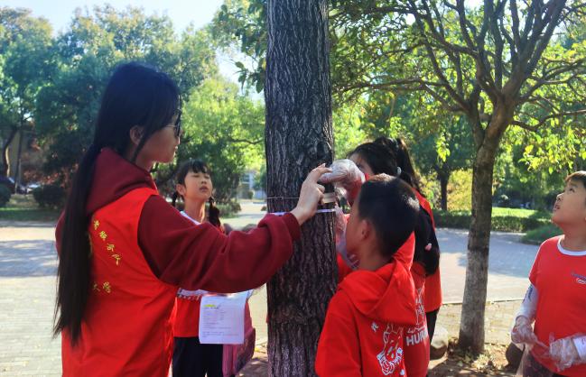 秋风送爽,10月25日,省生态环境科普和教育基地——湖南农业大学“湘依”科普志愿服务队携手华夏小学2105班的同学们,在校园内共同开展了一场“‘不止青绿’——探索活化石银杏”为主题的科普实践活动。