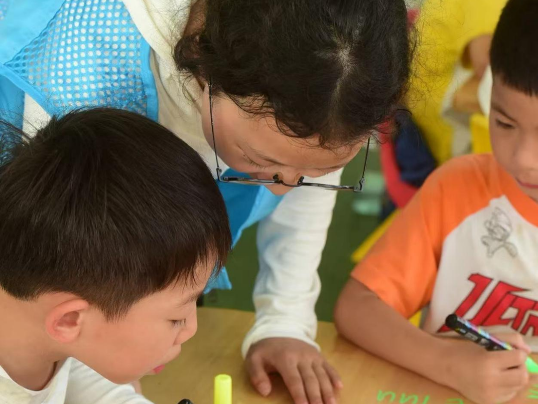 “老师,我昨天告诉妈妈矿泉水瓶属于可回收物,要放在蓝色垃圾桶哦。”小郭一早来到课堂就开心地给志愿者姐姐分享他的收获。志愿者通过生动的生态小课堂,让垃圾分类等知识走进孩子心里,悄悄播下环保的种子。
