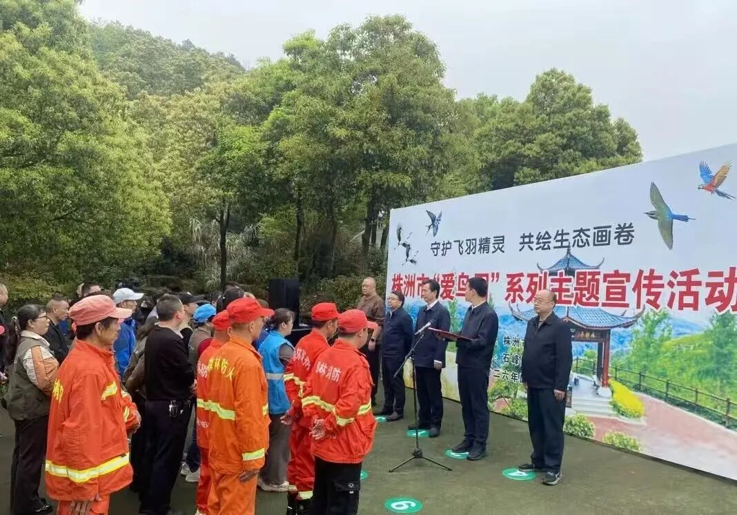 副市长刘飞勇出席启动仪式并宣布活动开始,市林业局、石峰区林业局等单位代表、护鸟志愿者、一线护林员等50余人共同参与见证。本次活动由市林业局主办、石峰区林业局协办,以“守护飞羽精灵,共绘生态画卷”为主题,通过科普宣传与实地行动,凝聚生态保护共识,普及野生动物保护知识,联动社会各界守护株洲生态安全。