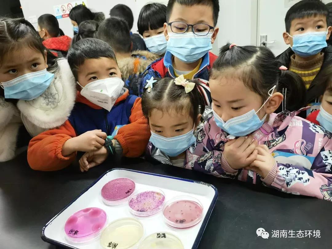 在微生物培养室,一大排花花绿绿的细菌培养皿吸引了小朋友们的目光,技术人员逐一对展示的细菌进行讲解,小朋友通过显微镜第一次看到细菌的“真面目”,连连惊呼“太神奇了!”。