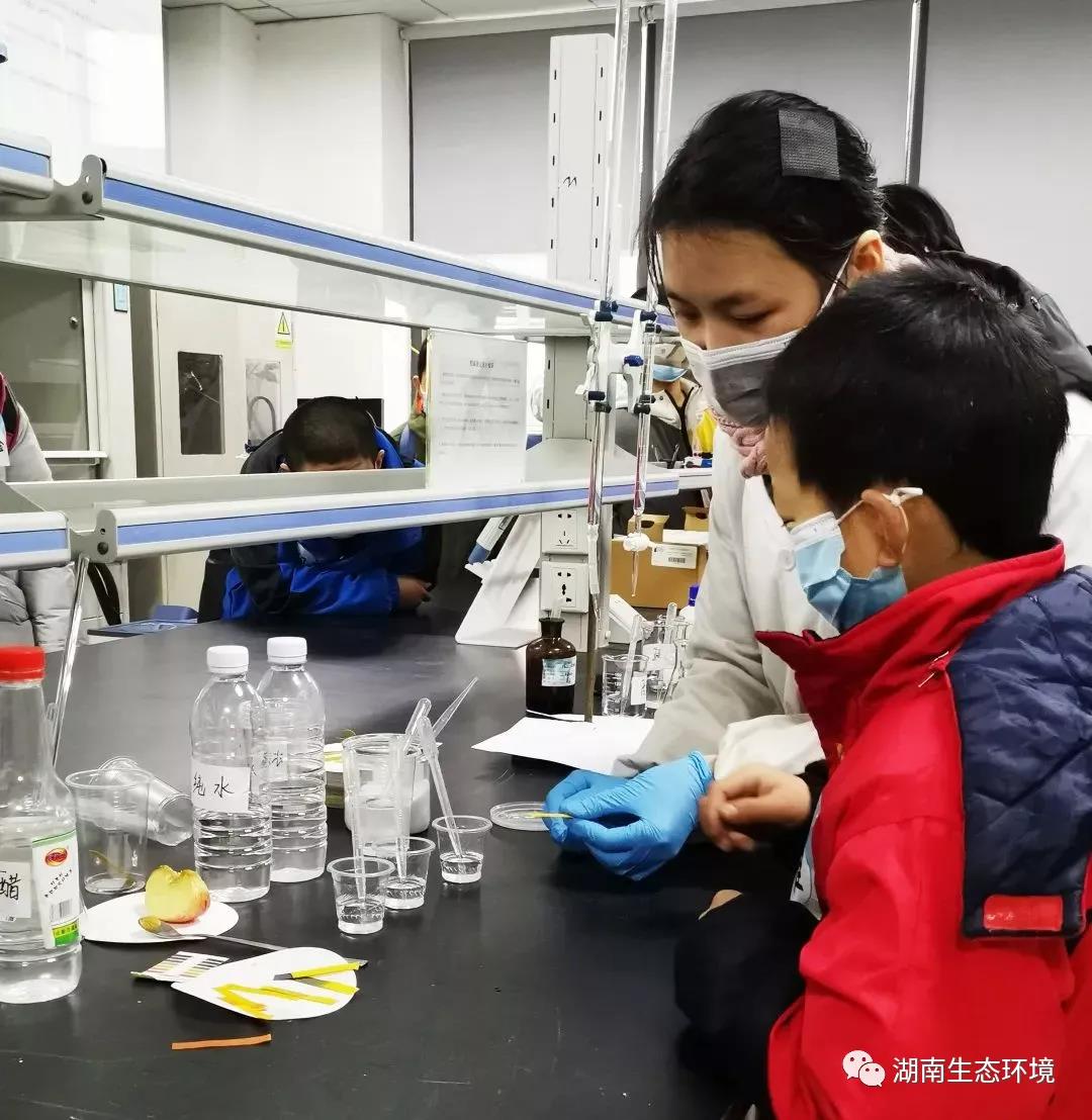 在环保检测实验室,小朋友们在技术人员的指导下,观看并体验了“酸碱滴定”实验,通过区分酸碱性物质,了解到水质过酸或过碱的危害,更激发了他们在生活中“节约用水、保护水资源”的意识。
